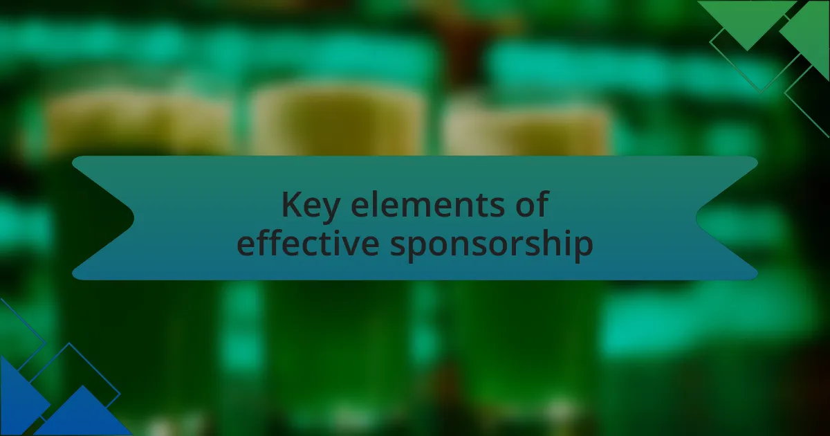 Effective sponsorship relies heavily on mutual benefit and clear alignment of goals. I recall working with a local distillery that wanted to reach a younger audience. It was eye-opening to see how we co-created an event that not only showcased their gin but also provided value to attendees through engaging experiences. Have you ever been part of something where both sides genuinely thrived? That’s what makes sponsorship powerful.